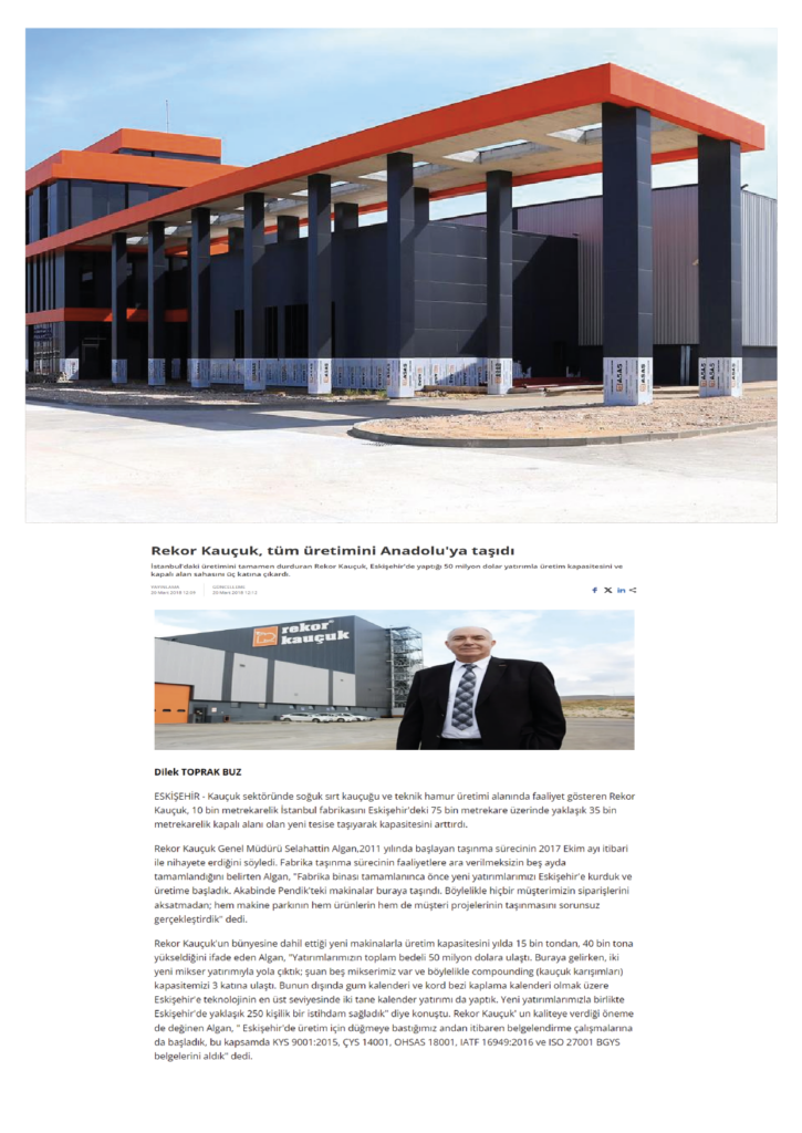 Rekor Kauçuk Yeni Yönetim ve Üretim Binası İnşaatı
