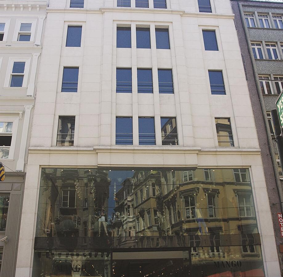 The flagship store project developed for Mango Tekstil Türkiye on Beyoğlu’s Istiklal Street — in the historic building formerly known as Vakko — was completed by DEA YAPI on a 5,580 m² construction area on a turnkey basis between 2008 and 2009. The nine-story structure, comprising two basements, a ground floor, and six upper levels, was delivered with all architectural, electrical, and mechanical design, approval, and implementation managed end-to-end.